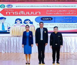วันที่ 20 กุมภาพันธ์ 2569 เวลา 09.00 น. ผู้ช่วยศาสตราจารย์นเรศ ขันธะรี คณบดีคณะครุศาสตร์ เป็นประธานเปิดกิจกรรมการสัมมนาระหว่างการปฏิบัติการสอนในสถานศึกษา 1 ครั้งที่ 2 รายวิชา “การปฏิบัติการสอนในสถานศึกษา 1” สำหรับนักศึกษาชั้นปีที่ 2