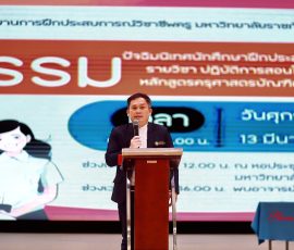 คณะครุศาสตร์ มหาวิทยาลัยราชภัฏอุบลราชธานี จัดกิจกรรมปัจฉิมนิเทศนักศึกษาฝึกประสบการณ์วิชาชีพครู รายวิชาการปฏิบัติการสอนในสถานศึกษา 1 สำหรับนักศึกษาชั้นปีที่ 2 เพื่อสรุปผลการเรียนรู้จากการฝึกประสบการณ์จริงในสถานศึกษา พร้อมเสริมสร้างสมรรถนะวิชาชีพครูและเตรียมความพร้อมก่อนก้าวสู่การฝึกประสบการณ์ในระดับที่สูงขึ้นวันที่ 13 มีนาคม 2569 เวลา 09.00 น. ณ หอประชุมไพรพะยอม 2535 มหาวิทยาลัยราชภัฏอุบลราชธานี ผู้ช่วยศาสตราจารย์ ดร.นเรศ ขันธะรี คณบดีคณะครุศาสตร์ เป็นประธานเปิดกิจกรรมปัจฉิมนิเทศนักศึกษาฝึกประสบการณ์วิชาชีพครู รายวิชา “การปฏิบัติการสอนในสถานศึกษา 1” สำหรับนักศึกษาชั้นปีที่ 2 โดยมีผู้บริหาร คณาจารย์ และนักศึกษาจากหลายสาขาวิชาเข้าร่วมกิจกรรมอย่างพร้อมเพรียง