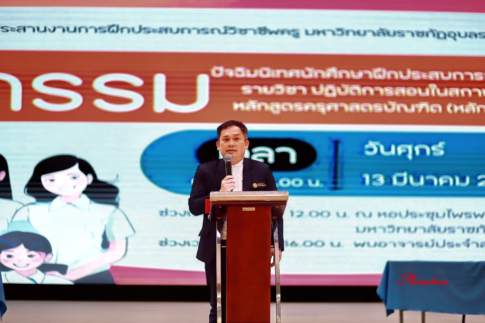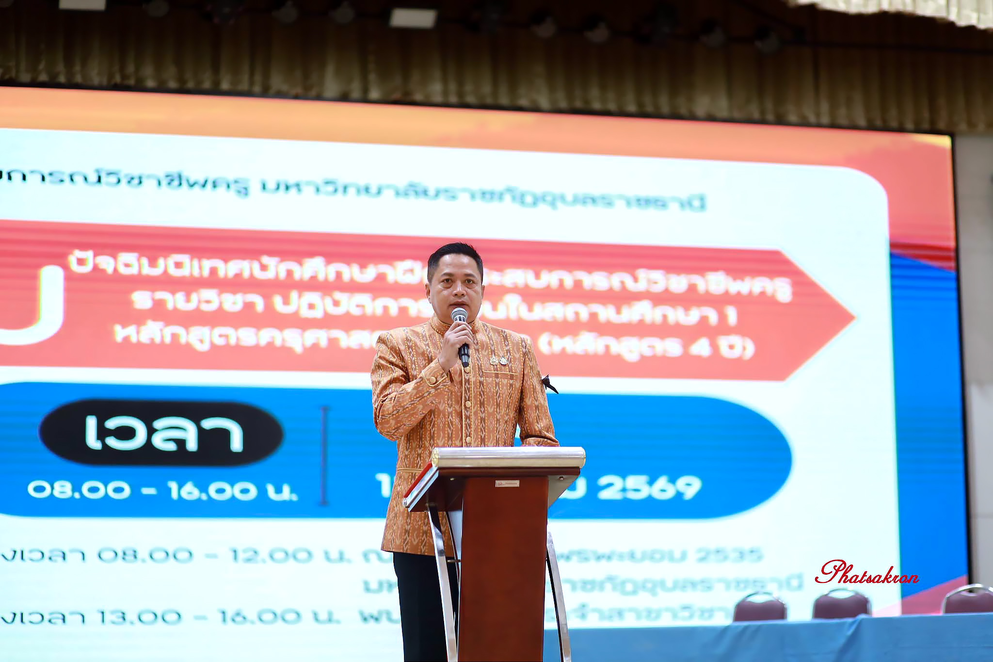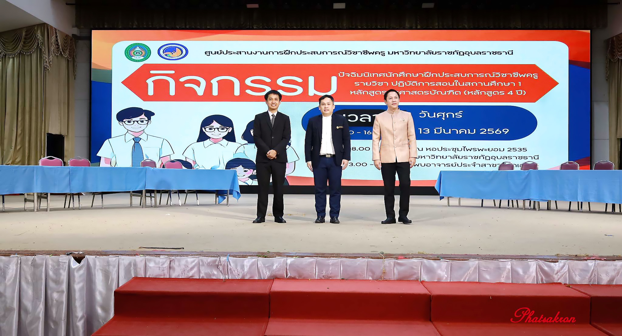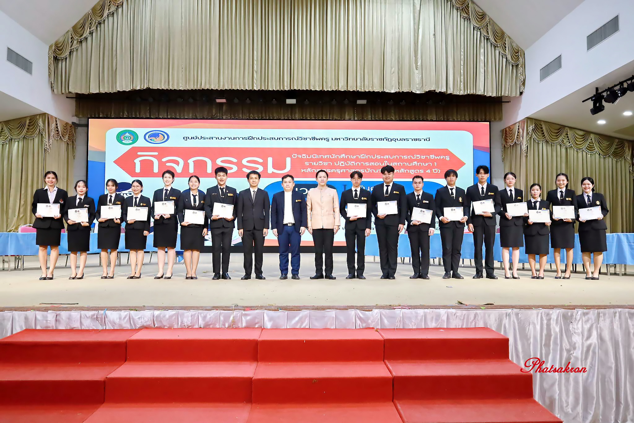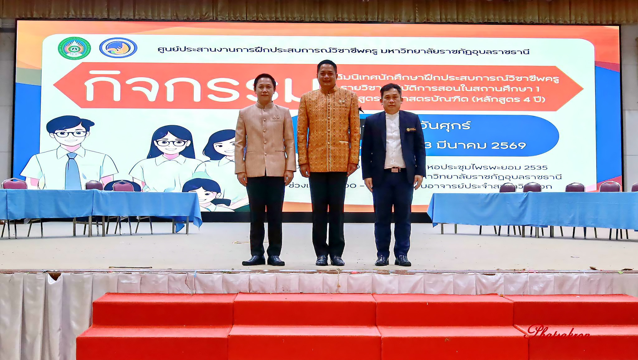 คณะครุศาสตร์ มหาวิทยาลัยราชภัฏอุบลราชธานี จัดกิจกรรมปัจฉิมนิเทศนักศึกษาฝึกประสบการณ์วิชาชีพครู รายวิชาการปฏิบัติการสอนในสถานศึกษา 1 สำหรับนักศึกษาชั้นปีที่ 2 เพื่อสรุปผลการเรียนรู้จากการฝึกประสบการณ์จริงในสถานศึกษา พร้อมเสริมสร้างสมรรถนะวิชาชีพครูและเตรียมความพร้อมก่อนก้าวสู่การฝึกประสบการณ์ในระดับที่สูงขึ้นวันที่ 13 มีนาคม 2569 เวลา 09.00 น. ณ หอประชุมไพรพะยอม 2535 มหาวิทยาลัยราชภัฏอุบลราชธานี ผู้ช่วยศาสตราจารย์ ดร.นเรศ ขันธะรี คณบดีคณะครุศาสตร์ เป็นประธานเปิดกิจกรรมปัจฉิมนิเทศนักศึกษาฝึกประสบการณ์วิชาชีพครู รายวิชา “การปฏิบัติการสอนในสถานศึกษา 1” สำหรับนักศึกษาชั้นปีที่ 2 โดยมีผู้บริหาร คณาจารย์ และนักศึกษาจากหลายสาขาวิชาเข้าร่วมกิจกรรมอย่างพร้อมเพรียง